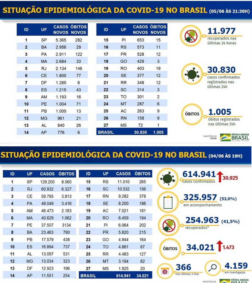 Veja abaixo a comparação entre o boletim do dia 04 e de