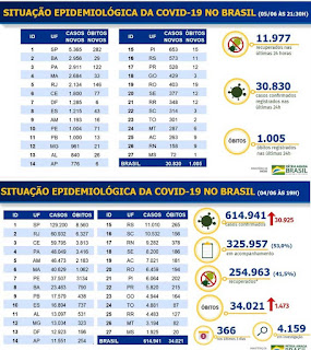 Nas últimas 24h, o Brasil registrou mais 1005 mortes,